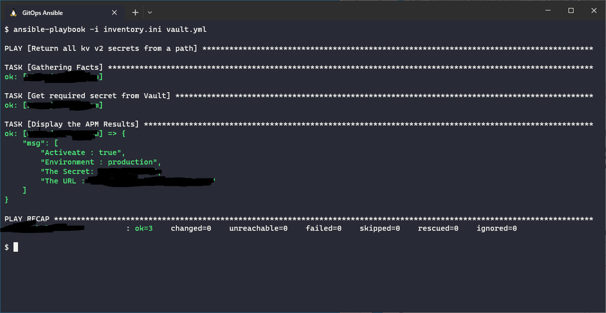 - "The URL : {{ apm.secret.ELASTIC_APM_SERVER_URL }}"Run Your Ansible Playbooks