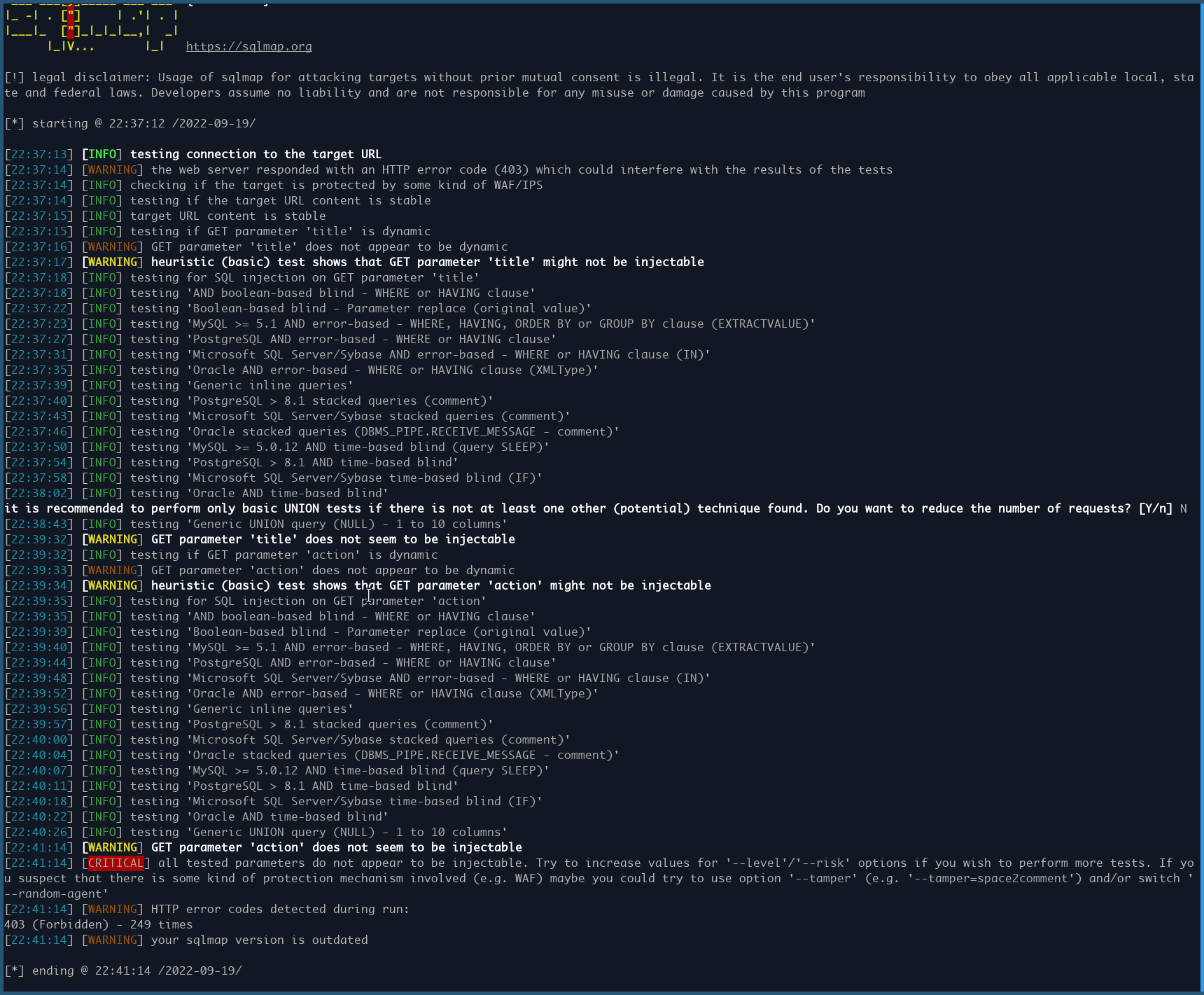https://github.com/sqlmapproject/sqlmap/issues/4529 [CRITICAL] WAF/IPS identified as ‘’modsecurity (Trustwave)’ · Issue #4529 · sqlmapproject/sqlmap