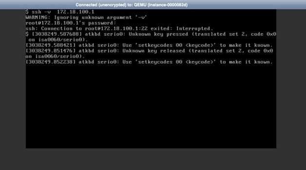 Dapat terlihat bahwa ketika melakukan akses ssh ke FIP tersebut menggunakan argument debug ( -vvv ), connection established. Namun session SSH tidak terbuka-buka.