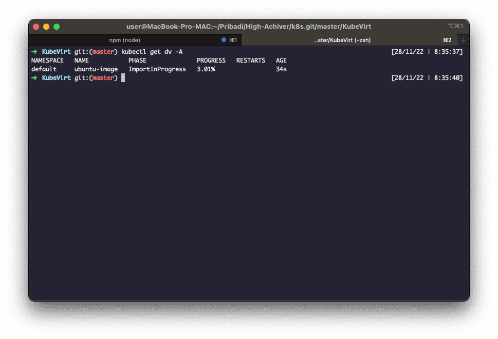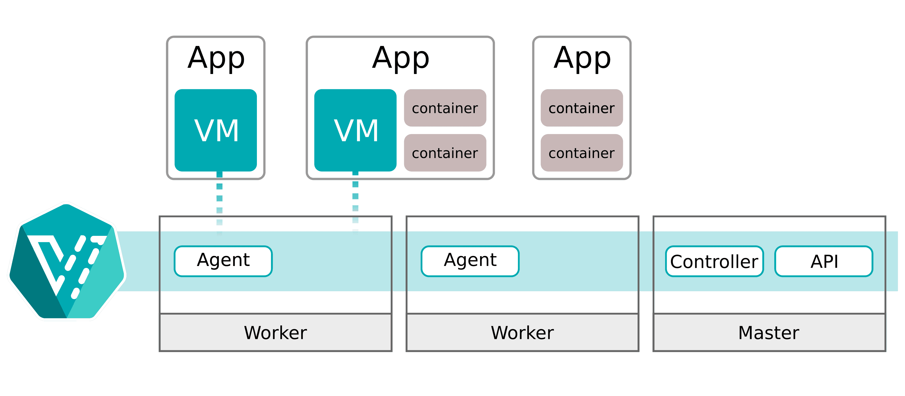 KubeVirt adalah operator dengan CRD kubernetes yang nantinya akan melakukan spawn container berisikan kvm dan segala utility-nya seperti libvirtd, virsh, dkk.